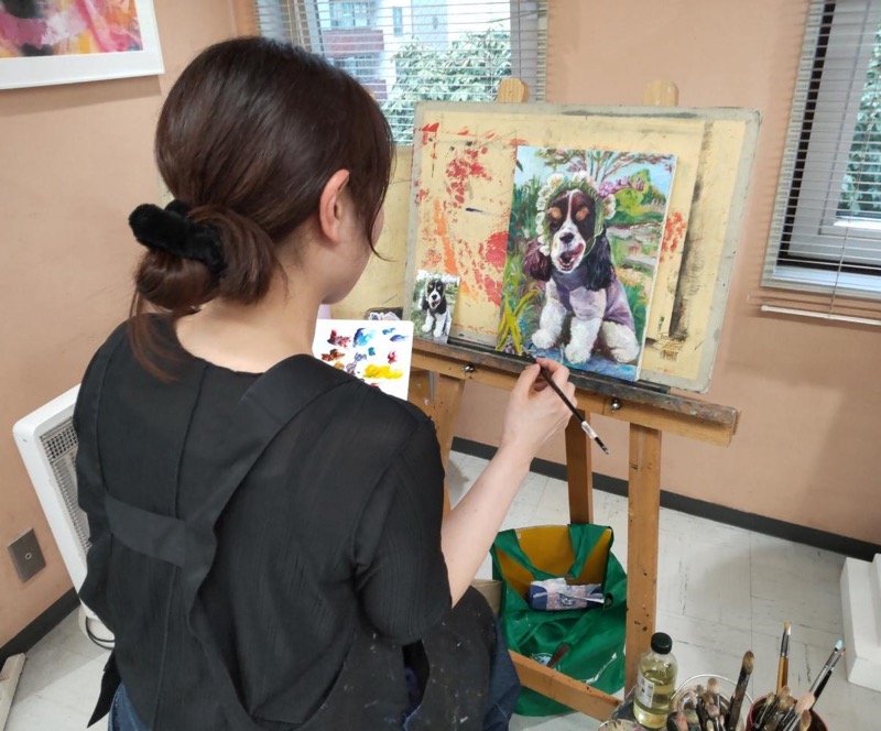 ペットのわんちゃんを描いた作品です。